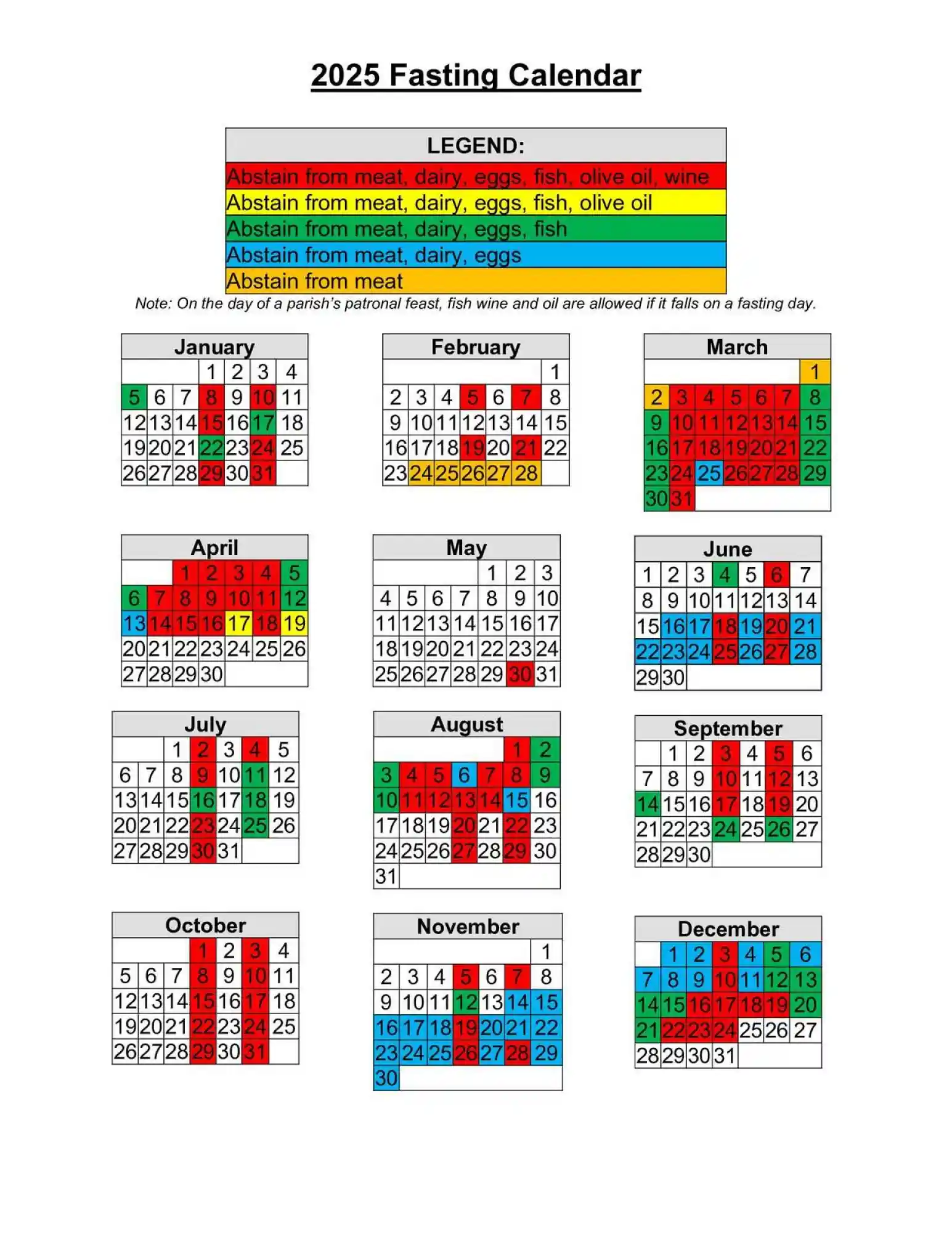 Note that fish is allowed only on Saturdays and Sundays during the Nativity Fast and not the entire fast. Some jurisdictions have significantly more lenient requirements during this fast.
