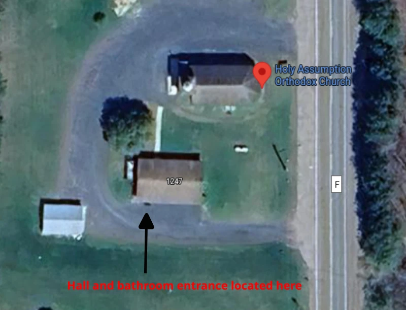 Bathrooms and the hall our located in the building next to the church. Please enter at the lower portion of the hall.